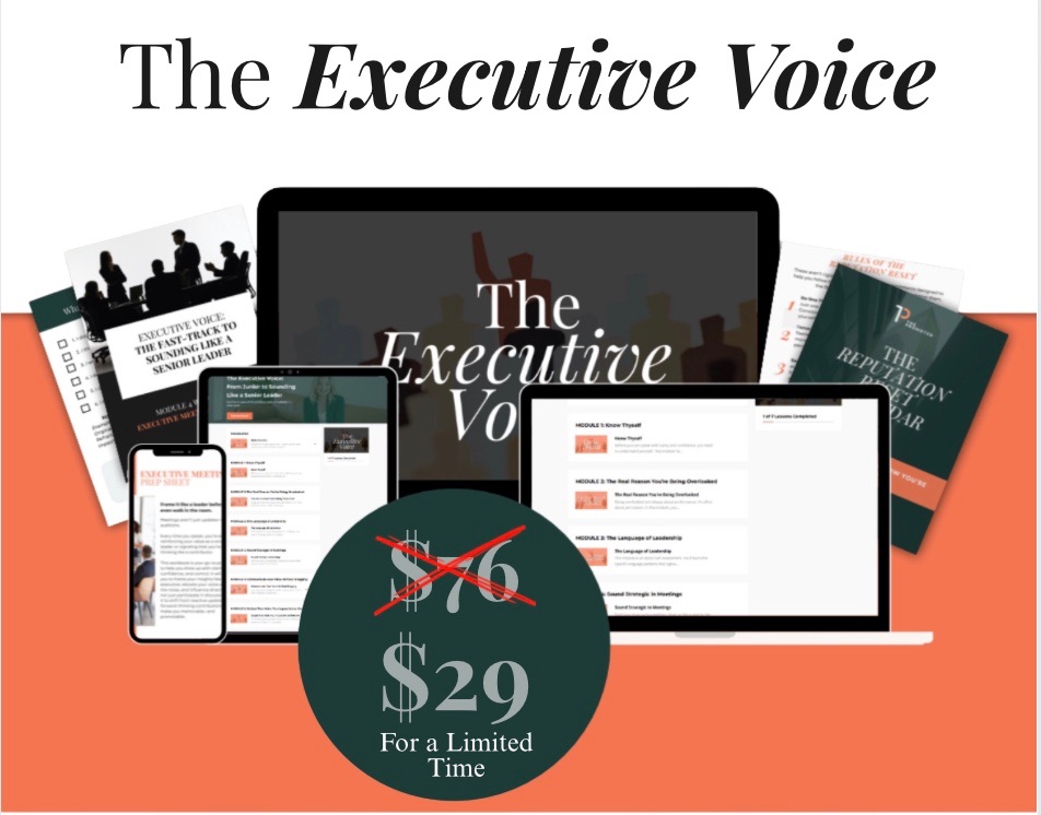 This isn’t just another “training” (because it’s actually NOT a training). It’s your fast-tracked, repeatable framework to show up confident, credible, and leadership-ready every time you step into a room.